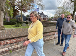 Het was prachtig weer. Het tempo werd aangepast aan mensen die wat langzamer liepen met een stok of krukken. Zij hadden het er voor over om mee te doen met de stadswandeling. De tocht was in en om het centrum. Knap hoe zij meeliepen.